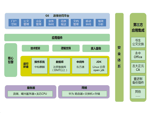 产品从硬件到软件部分,包括服务器端、操作系统、数据库、中间件等,全面支持国产化。