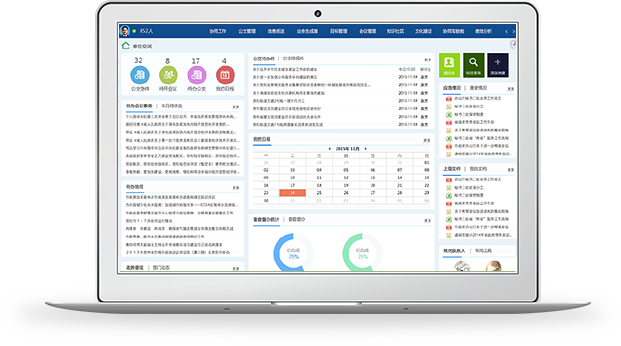 组织及个人的移动入口,新闻,公告,日程事件,时间安排, 离线文档,第三方业务集成